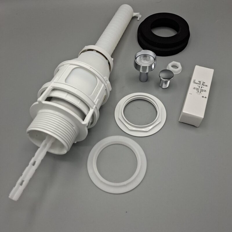 Universeel uitstroommechanisme voor Friatec inbouwreservoirs met frontbediening en boven (planchet) bediening.